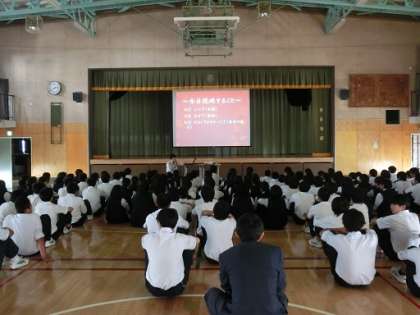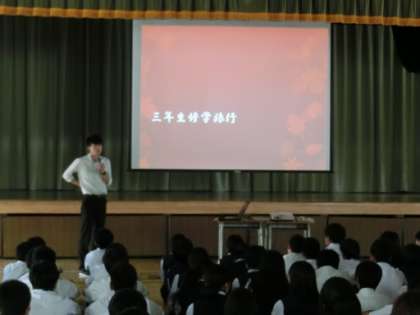 修学旅行事前学習 公開日 2018/06/22 更新日 2018/06/22 今日のできごと 3年生が9月に実施する修学旅行の事前学習を体育館で行いました。担当の教員から、修学旅行の概要と事前学習についての説明がありました。生徒たちは真剣に担当の先生の話を聞いていました。 いいね(0)