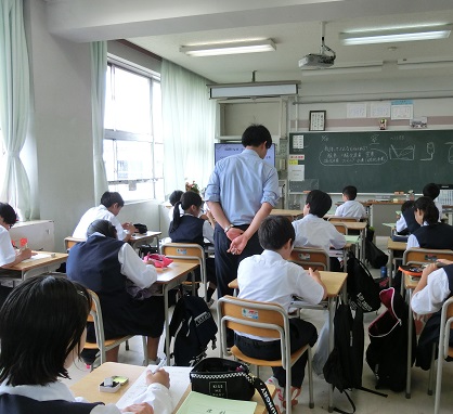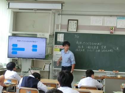 3年次研修、授業委観察を行いました。1年生理科、「気体の集め方」についての内容でした。担当教員はパワーポイントを使ったり、話し合い活動を取り入れた授業でした。生徒たちは、興味をもって授業に参加している様子でした。その後、指導力向上サポート室の先生から授業についてのご指導を受けました。授業力をつけるための良い機会となりました。