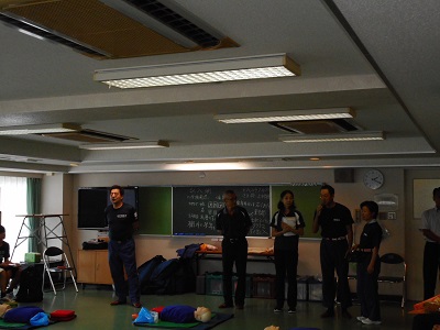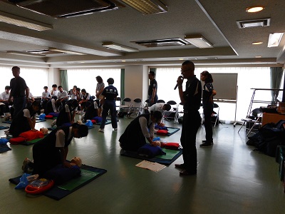 救命講習会 公開日 2018/07/18 更新日 2018/07/18 今日のできごと 松沢地区社会福祉協議会主催の「救命講習会」を、本校ミーティングルームで行いました。中学生に有事に備えて助かる命の手助けをしてほしいという主旨のもと、40名の生徒が「心肺蘇生法」やAED(自動体外除細動器)の使い方を講師の先生方から学び、実習しました。参加した生徒にとっては、とても貴重な体験となりました。 いいね(0)