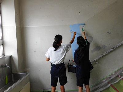 夏季休業中の階段ペンキ塗り 公開日 2018/07/30 更新日 2018/07/30 今日のできごと 「自分たちで学校をきれいにし、施設・設備を大切に使用する意欲を高める、自分たちでペンキ塗りを行うことにより、愛校心を高める、ボランティアに参加することにより、奉仕の心を育てる」ことを目的として、夏季休業中の階段ペンキ塗りを行いました。今回は、南校舎東・西階段のペンキ塗りを3年生が参加して行いました(明日31日も行います)。今後は、北校舎西階段(2年生)、北校舎東階段(1年生)を行う予定です。 いいね(0)
