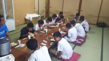 部活動合宿3日目 昼食休憩 公開日 2018/08/02 更新日 2018/08/02 今日のできごと 部活動合宿3日目、サッカー部が宿舎に戻り、昼食休憩をしている様子です。このあと、またグランドに戻り練習を行います。 いいね(0)