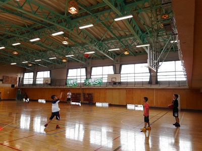 部活動体験 バスケットボール部 公開日 2018/08/28 更新日 2018/08/28 今日のできごと バスケットボール部で部活動体験をしている様子です。小学生の皆さんは、中学生の指示に従って練習をこなしています。 いいね(0)