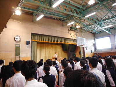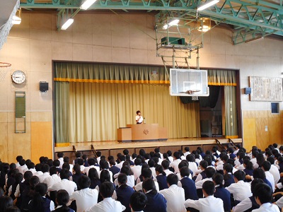 全校朝会 公開日 2018/09/11 更新日 2018/09/11 今日のできごと 9月10日(月)に全校朝会を行いました。校長先生の話、生徒会からの報告、生活指導主任の先生からの話がありました。その後、夏休みの行われた東京都吹奏楽コンクールの表彰を行いました。 いいね(0)