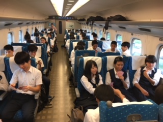 予定通りに8時53分に.、新幹線は東京駅を出発して、11時14分に京都駅に着く予定です。新幹線の中では、思い思いに楽しく過ごしています。