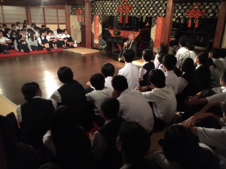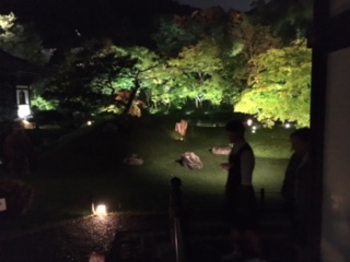 夕食後に高台寺に出かけ、和尚さんの法話と能の見学、夜の庭園を見学して来ました。
