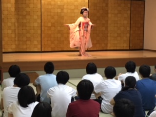 二日目夜の体験学習は、舞妓の鑑賞教室を行いました。