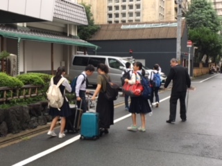 修学旅行三日目宿舎出発 公開日 2018/09/22 更新日 2018/09/22 今日のできごと 三日目のタクシー行動が始まりました。記念写真を撮って、運転手さんの案内で見学します。元気に出発しました。 いいね(0)