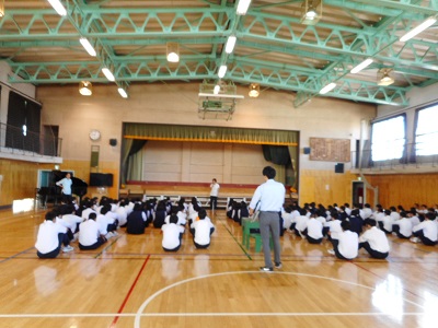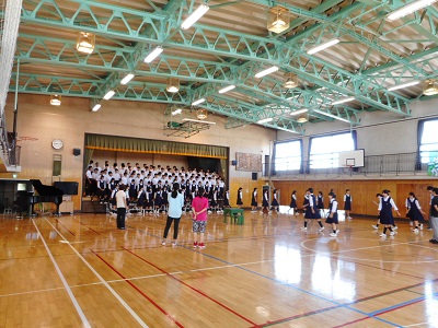 学芸発表会 学年合唱練習 3年生 公開日 2018/10/01 更新日 2018/10/01 今日のできごと 10月20日(土)に開催する学芸発表会に向けて、3年生が学年合唱の練習を行いました。音楽の担当の先生から、合唱に取り組む心構えや入退場の仕方の話がありました。最上級生らしく一生懸命に合唱を行っていました。 いいね(0)