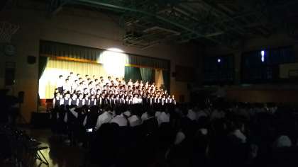 1年生学年合唱の様子です。曲目は怪獣のバラードです。