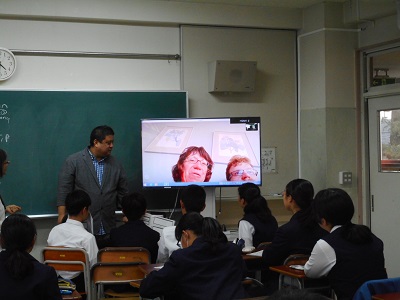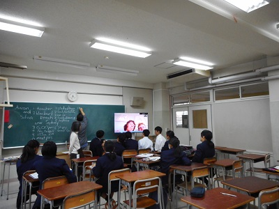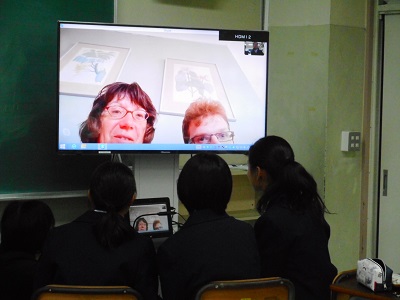 イングリッシュタイムにおける「スカイプによる外国人との実践会話」を行っている様子です。オーストラリア ニューサウスウェールズ州の女性・男性と英会話を行いました。4つのグループに分かれて一人ひとりが質問をして答えてもらう形式でした。生徒たちは、はじめは緊張していましたが、真剣にかつ楽しそうに英会話を楽しんでいました。参加した生徒たちにとって、とても良い経験となりました。
