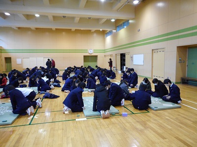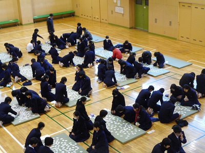 12月12日(土)に、1年生が百人一首大会を行いました。生徒たちは読み上げられた句の下の句の札を一心不乱に追っていました。寒い格技室でしたが、熱く白熱した競技会となりました。