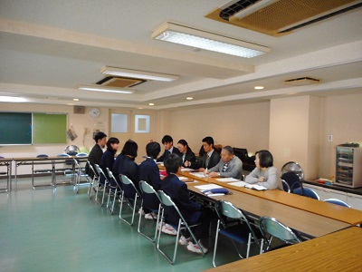 青少年経堂地区委員会と生徒会との交流会 公開日 2019/01/17 更新日 2019/01/17 今日のできごと 今年度2回目の青少年経堂地区委員会と本校生徒会との交流会をミーティングルームで行いました。自己紹介の後、経堂地区委員会事業の活動についての説明、本校生徒会の紹介、情報交換(最近の緑丘中学校の様子など)を行いました。参加した生徒たちは、緊張しながらも、一生懸命に発言していました。そして、地域に支えられている学校であるということを改めて自覚したようでした。 いいね(0)