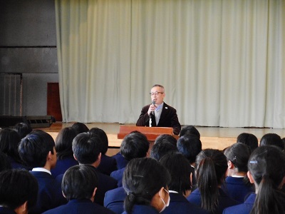 2年生が、2月5日(火)から3日間行う職場体験に向けて、下高井戸商店街振興組合専務理事 石井 健夫 様を講師としてお招きして、職場体験講演会を行いました。石井様からは、働くことの意義について、職場体験に向けての心構え、そして、人と人とのコミュニケーションの大切さについてのお話をいただきました。また、下高井戸の歴史についてもお話をしていただきました。生徒たちは石井様の話を真剣に聞いていました。職場体験では、多くの地域の方々にお世話になります。どうぞよろしくお願いいたします。