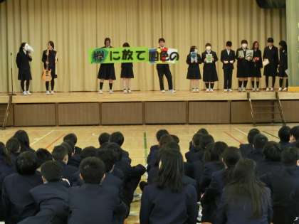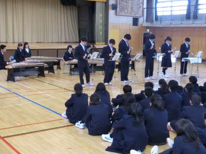 部活動説明会 その2(文化部) 公開日 2019/04/10 更新日 2019/04/10 今日のできごと 文化部では、演劇部、美術部、茶道部、緑のボランティア部、吹奏楽部の説明や琴、日本舞踊のステップの説明、華道についての説明がありました。 いいね(0)