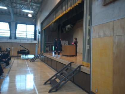 平成31年度 離任式 公開日 2019/05/02 更新日 2019/05/02 今日のできごと 4月26日(金)に昨年度緑丘中学校を去られた先生方への離任式が行われました。離任式に参加された先生は、矢冨先生・高橋先生・高士さん・恵さんの4名でした。先生一人一人の話をしっかりと受け止め、感謝の気持ちで送り出すことができていました。 いいね(0)