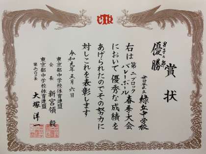 新人大会に引き続き、春季大会でも世田谷区、ブロック共に優勝を果たしました。次は都大会優勝が目標です。