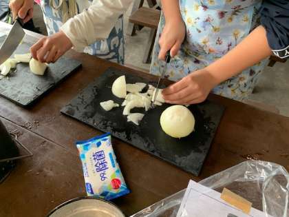 すべての野菜を切り終えてサラダまで出来あがった班など、進み具合が変わってきました。