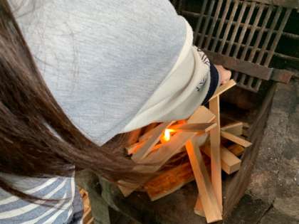 マッチを使って見事に着火成功。