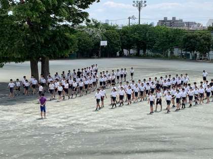 6月1日の体育大会に向けて3年生が入場の練習をしています。
