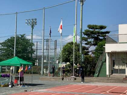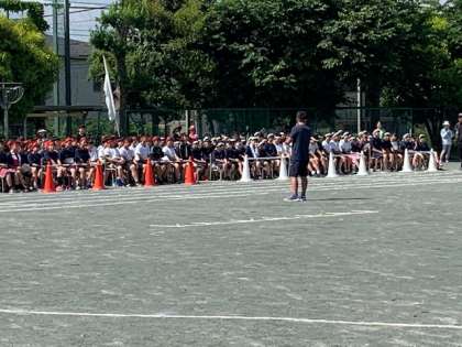 体育大会への心構えと予行の大切さを全員で確認して予行が始まります。