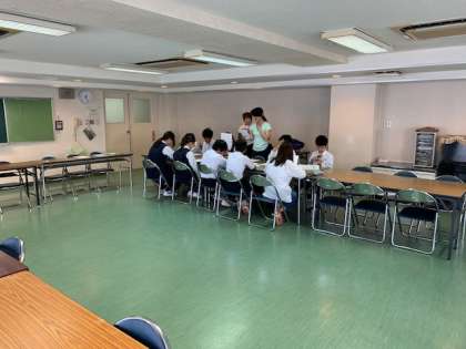 本校からは9名が参加します。車椅子の押し方や接し方など詳細な説明を真剣に聞いていました。