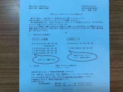 本日昼休み、松沢地区委員さんより老人ホームボランティアについての説明がありました。