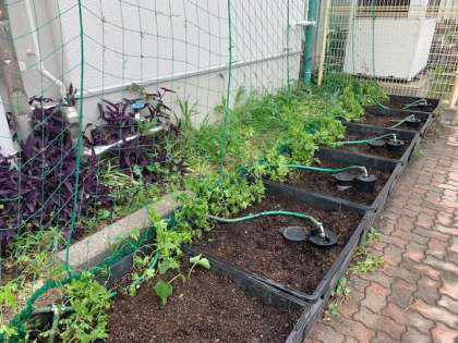 少し遅くなりましたが、南校舎校庭側壁面にグリーンカーテンを設置しました。