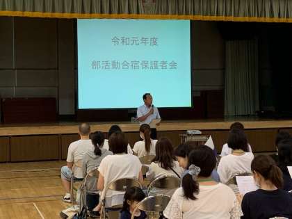 部活動合宿保護者説明会 公開日 2019/07/02 更新日 2019/07/02 今日のできごと 昨日、7月31日〜8月3日に実施する部活動合宿の保護者説明会を開催しました。 宿泊ホテルや活動場所である体育館やグランドなど、映像を見ながら説明がありました。 いいね(0)