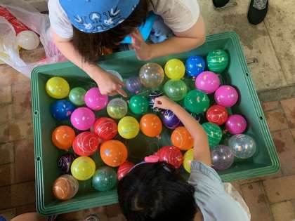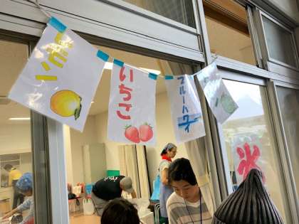 裏方としてかき氷のシロップをかけたり、ヨーヨーの空気を入れたりと、先輩として貢献しています。