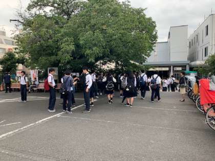 班員が桜上水駅に戻ってきました。チェックが終わった班から解散しています。