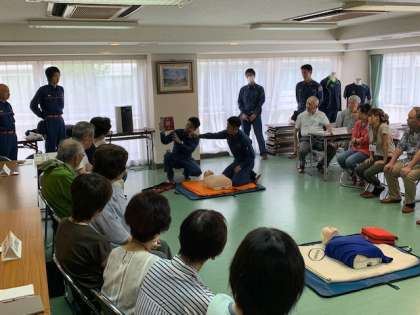 避難所運営委員会 公開日 2019/07/20 更新日 2019/07/20 今日のできごと 本日ミーティングルームに於いて、避難所運営委員会を開催しました。 消防署、消防団の皆さまを講師に招き、AED体験訓練を行いました。 いいね(0)