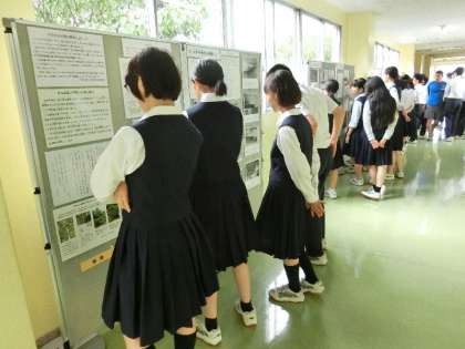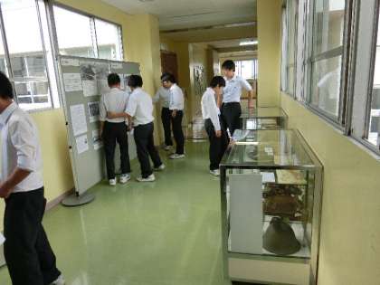 9月25日から10月7日まで、渡り廊下で平和資料館巡回展を展示しています。学年ごとに見学の時間を設定して、ゆっくりと見学をしています。