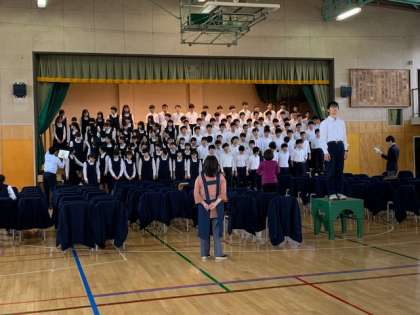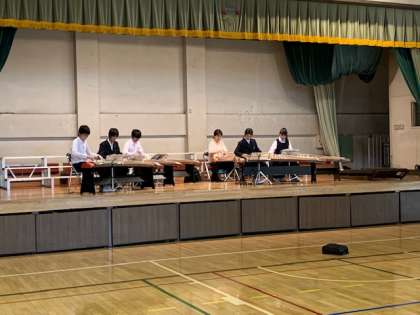 学芸発表会前日、体育館でのリハーサルや展示が生徒たちの力によって準備が整いました。
