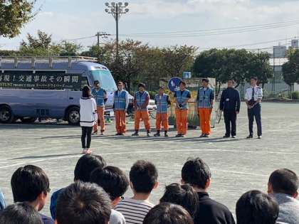 前回雨天のため延期になっていた交通安全教室が本日開催されました。
