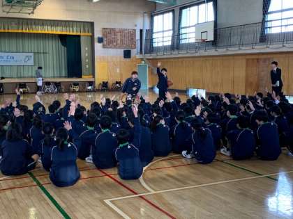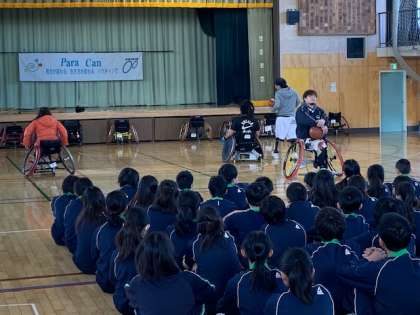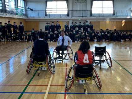 オリンピックパラリンピック教育 公開日 2019/12/18 更新日 2019/12/18 今日のできごと 本日の1、2校時、NPOキャラパンのバスケットボール選手を講師にお招きし、一年生を対象に車イスバスケットボールの体験講座を開きました。ユーモア溢れる講座に生徒の笑顔が絶えず、楽しみながら学ぶことができました。 いいね(0)