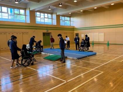 2年生車いすアイマスク体験 公開日 2019/12/22 更新日 2019/12/23 今日のできごと 12月20日、2年生が車いすアイマスク体験を行いました。体験を通して、困っている人への声かけやサポートの方法などを学びました。 いいね(0)