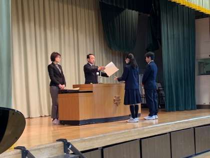 12月25日、令和元年度みどりの学び舎緑丘中学校第二学期終業式が行われました。また、式に続き表彰式も行われました。