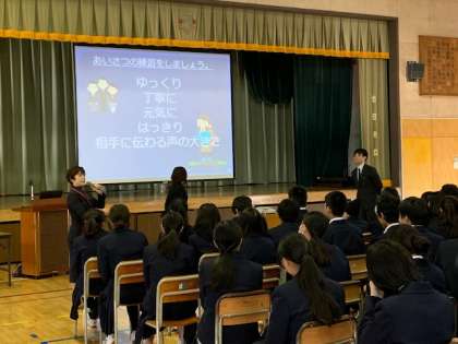 1月29日、職場体験を1週間後に控えた2年生が、ハローワークの冨田先生を講師にお招きして、マナー講座を受講しました。