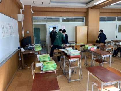 3月6日、学年末考査の結果等配布を行いました。3年生はすでに返却が済んでいるので、1年生、2年生が登校しました。
