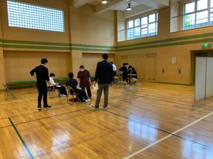 6月1日、約3ヶ月ぶりに学校が始まりました。本日は2年生・3年生の分散登校日です。昇降口と格技室で健康観察の確認が終わった生徒から教室に入り、久しぶりに友達と再会しました。雨の登校となりましたが放送での始業式のあと、学活そしてクラス発表が行われました。