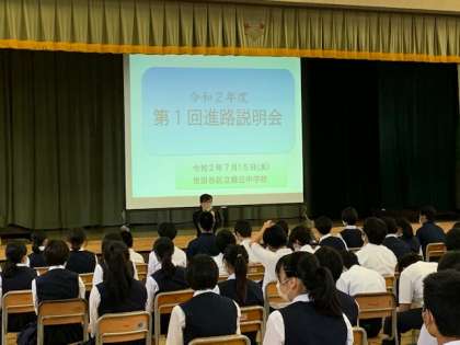 第1回進路説明会 公開日 2020/07/15 更新日 2020/07/15 今日のできごと 7月15日、第1回進路説明会を本校体育館で開催しました。コロナ感染症のため約1ヶ月遅れの開催でしたが、進路選択への道筋を学ぶことができました。 いいね(0)
