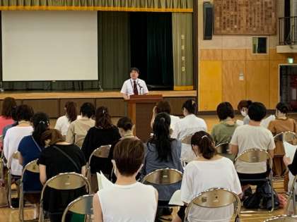7月15日、学年ごとに会場や時間差をつけて、全学年の保護者会を開催しました。