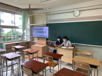 9月18日、Zoomによる生徒会選挙立候補者紹介を行いました。選挙管理委員会が設置と操作を担当、5分ほどでZoomを始めることができました。今回の取り組みにより生徒会選挙立会演説会もZoomで行う予定です。
