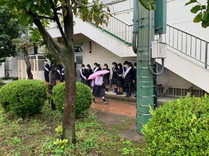 昨日の登校時から1週間、正門前で立候補者の校門挨拶活動が始まりました。初日からあいにくの雨ですが、大きな声で活動していました。