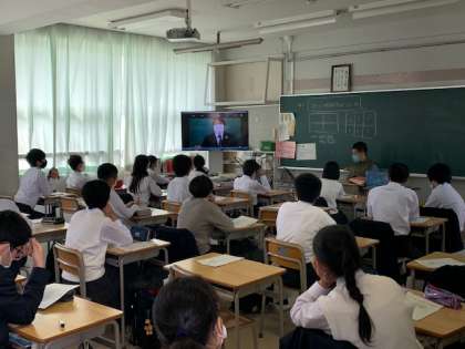 立候補者の演説が終わると、大型モニターに向かって教室では自然と拍手が起こり、そしてまた次の演説が始まります。次世代の緑丘中の代表として。