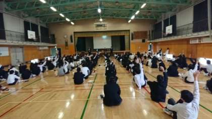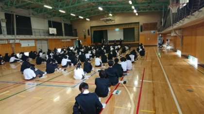 10月27日、1年生がビブリオバトルの実演を行いました。手本となる参加者はリブネット図書館司書の2名と大島先生、設樂先生です。