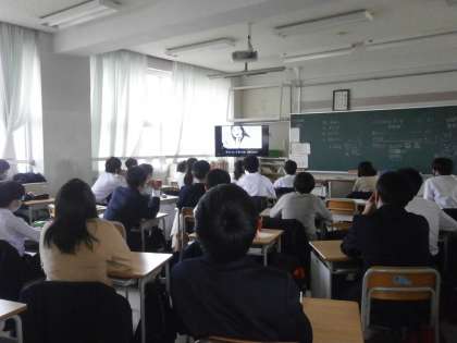 本日、6時間目にzoomにてセーフティ教室が行われました。携帯電話やスマートフォンの使用方法についてKDDIの方から講義をしていただきました。例年なら保護者、地域の方にも公開して行うセーフティ教室ですが、コロナ感染予防対策一環のため、生徒のみ教室で行いました。ご家庭でもこの機会に携帯電話やスマートフォンの使用方法を話し合ってみてください。