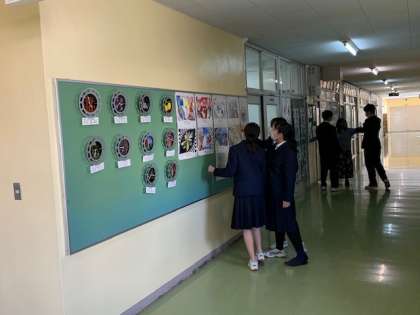 1月13日〜17日まで世田谷美術館で開催された、世田谷区中学生作品展に本校から出展した作品を職員室前の廊下に掲示しました。素晴らしい作品に通りかかる生徒たちが立ち止まりじっくりと鑑賞しています。