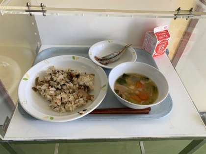 1月27日の給食は、ひじきご飯・すいとん・ししゃもです。