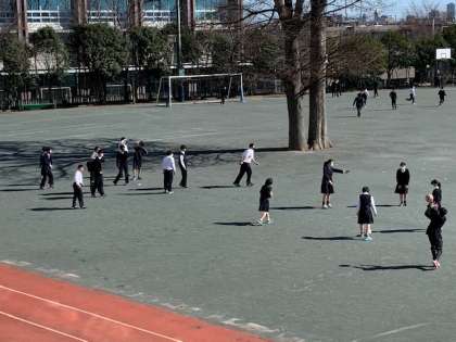 昨日の雨の一日からは想像できないくらいの爽やかな晴天となりました。給食終わりのチャイムとともに生徒たちが駆け出してきました。生徒たちの大好きな時間です。